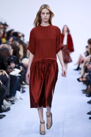 Chloe For Fall RTW 2012 presented collection in soft palette shades. On the catwalk models wore curved coats and jogging-style trousers that ruched into the ankle and gathered skirts or dropped waists to made for easy and breezy dresses to match the easy and breezy attitude of the Chloe girl simple and most wearable for next winter.